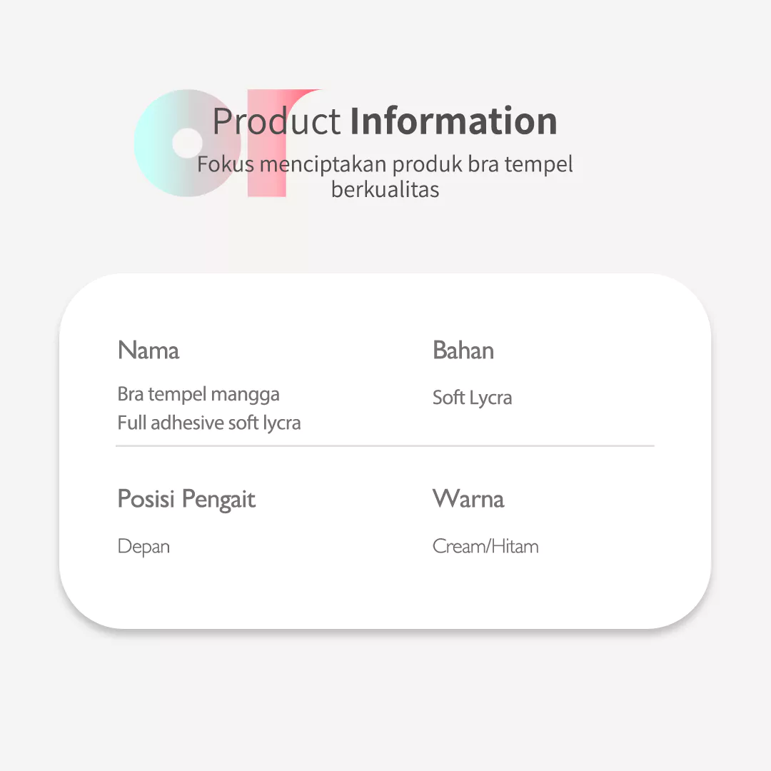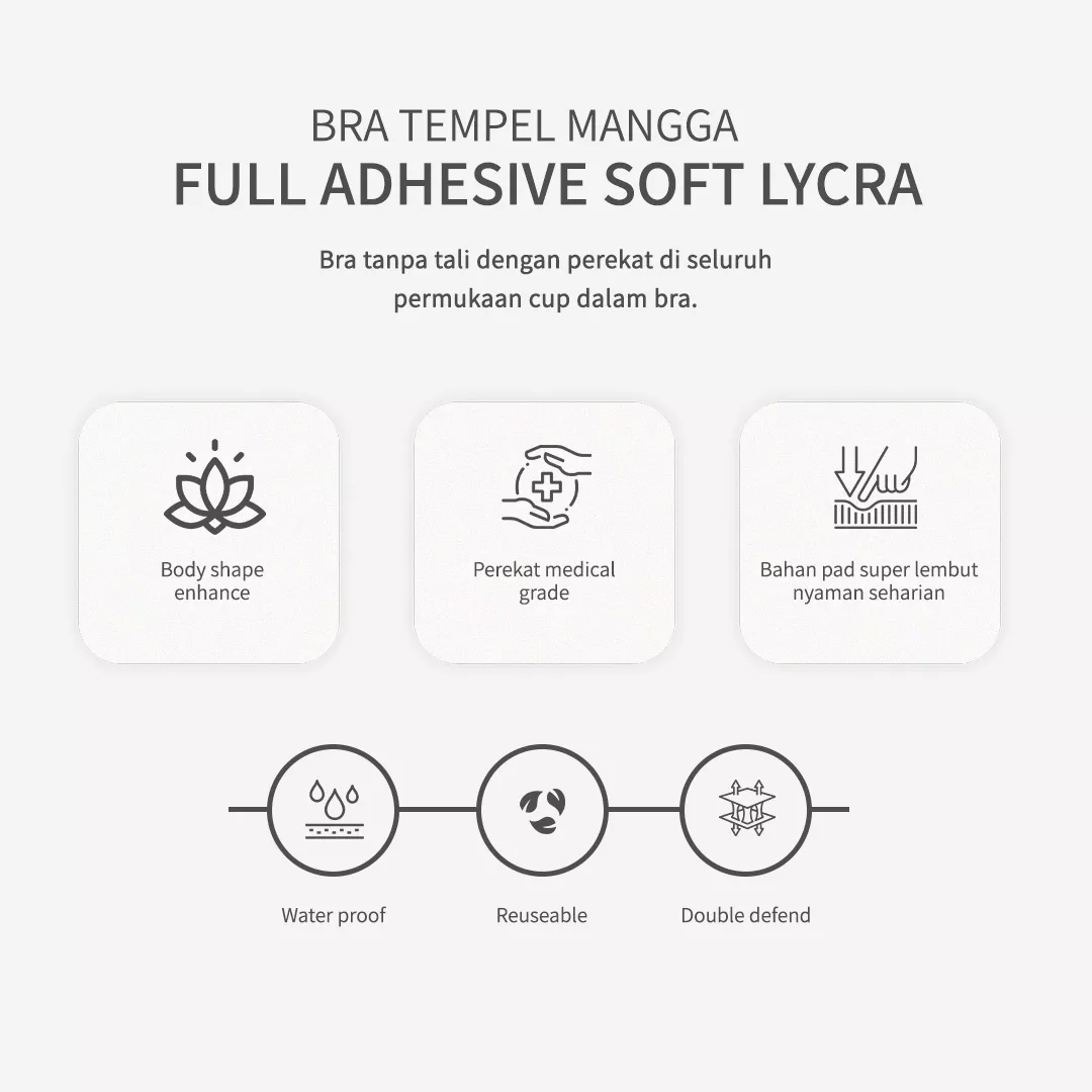 Bra ini dirancang tanpa tali, memberikan kenyamanan maksimal saat dipakai. Terbuat dari bahan Soft lycra, memberikan fleksibilitas dan kenyamanan sepanjang hari. Efek push-up instan membuat tampilan lebih kencang dan menarik. Didesain anti slip memastikan bra tetap di tempatnya sepanjang hari. Cocok dipadukan untuk semua jenis outfit